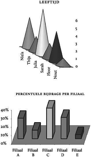Ere wie ere toekomt. Dankzij Excel kregen we ook toegang tot de inmiddels immens populair geworden driedimensionale grafiek. Met een extra dimensie erbij wordt een grafiek pas echt spannend, niet in de laatste plaats voor de consument. Hoe meer effecten, hoe meer kans op gekonkel en gestuntel. Dat is voor een 3D grafiek al niet anders. De volgende twee voorbeelden laten dat zien.