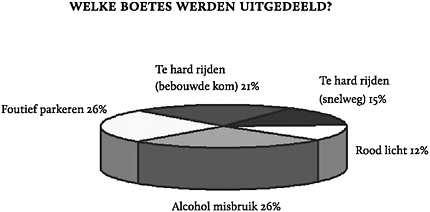 De categorie Alcoholmisbruik lijkt door de dikke rand groter dan Foutief Parkeren, maar is in werkelijkheid even groot. Alcoholmisbruik lijkt zelfs groter dan Te hard rijden (snelweg) en Rood licht bij elkaar.