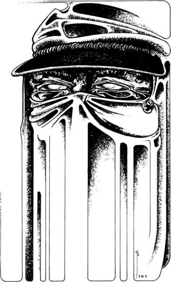 Selbst nach den Maßstäben seines Volkes war Niun groß. Seine hohen Wangenknochen trugen die Seta'al, die Dreifach-Sterne seiner Kaste, blaugefärbt und unauslöschlich. Sie besagten, daß er ein voll-flügges Mitglied des Kel war, der Hand des Volkes. Und als Angehöriger des Kel war er vom Kragen bis zu den Stiefelspitzen in schlichtes Schwarz gewandet; und ein schwarzer Schleier und ein mit Quasten verziertes Kopftuch, Mez und Zaidhe, verbargen alles außer Stirn und Augen vor Außenstehenden, wenn er beschoß, ihnen zu begegnen. Das Zaidhe hatte außerdem noch einen dunklen, transparenten Sichtschutz, der die Verschleierung vervollständigen konnte, wenn Staub wehte oder das rote Licht Arains seinen unangenehmen Zenit erreichte. Niun war ein Mann: sein Gesicht und seine Gedanken wurden als private Identität erachtet, und es war ungebührlich, sie Fremden zu offenbaren. Die Schleier umhüllten ihn wie die Gewänder, ein entscheidendes Merkmal der einzigen Kaste des Volkes, die mit Außenstehenden verkehren konnte. Die schwarzen Gewänder, die Siga, wurden über Taille und Brustkorb von Gürteln gehalten, die seine verschiedenen Waffen trugen; ebenso hätten sie J'tai halten sollen, Medaillen, für seine Dienste am Volk errungene Ehrungen. Aber sie fehlten, und dieser Mangel an Status würde jedem Mri auffallen, der ihn sah.