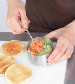 Ob Beefsteak-, Lachs- oder Gemüsetatar: Feingewürfeltes ist im Trend. Besonders schön sieht es aus, wenn man das Tatar als »Türmchen« präsentiert – das geht besonders gut mithilfe von Anrichteringen aus Metall, die man auch zum Ausstechen von Teig und Broten oder für süße Cremes und Törtchen verwenden kann.