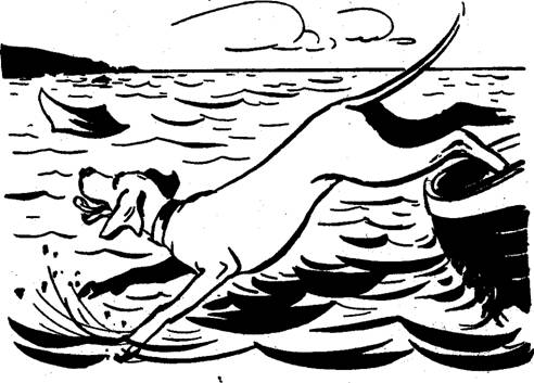 Dagobert nageait fort bien pour un chien, car il possédait des muscles puissants. Il eut tôt fait de cueillir la carte dans sa gueule puis de revenir vers le canot. Ses jeunes maîtres étaient stupéfaits de tant d’intelligence et d’habileté.