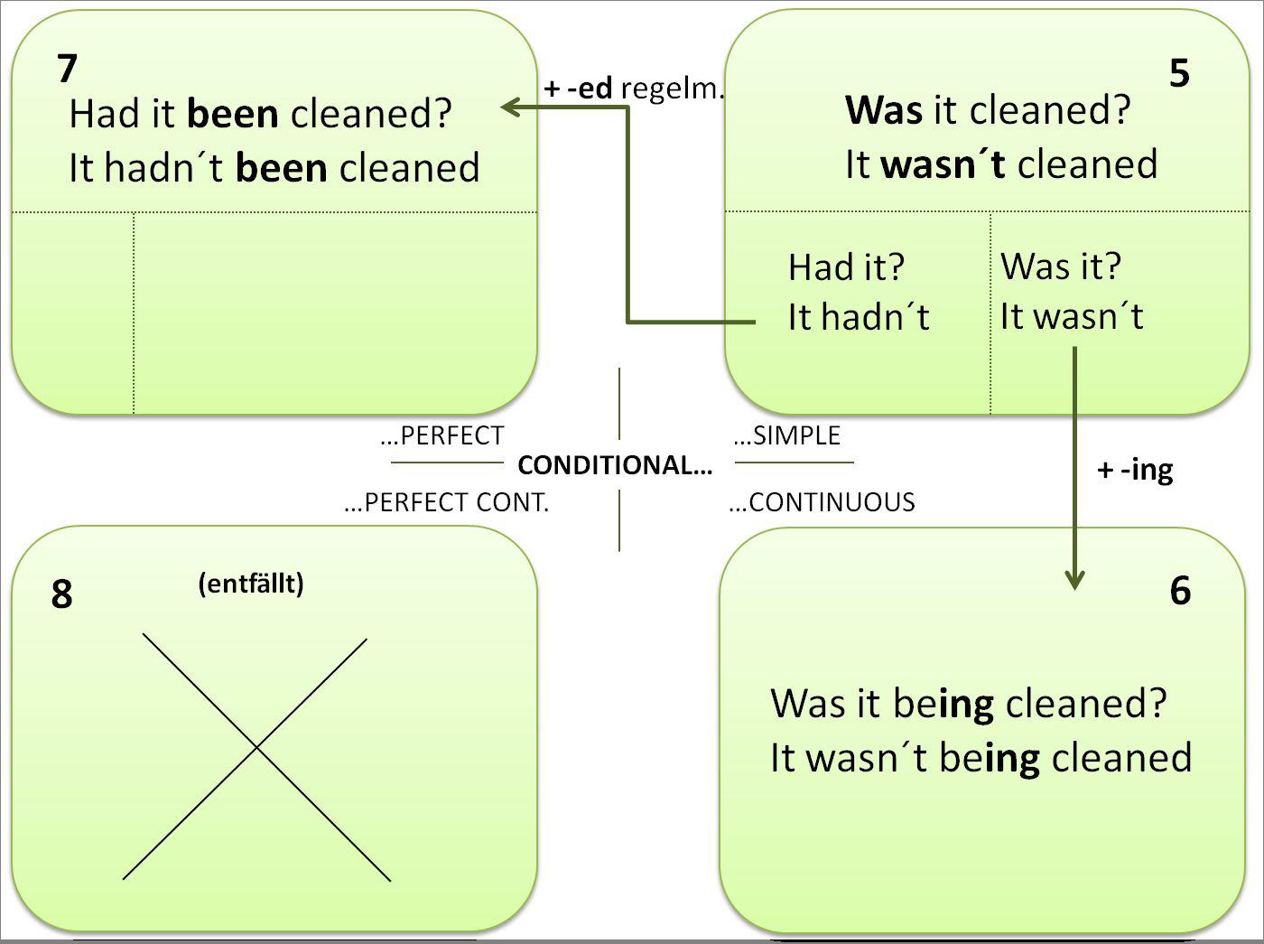 Abbildung 18: Bildung des Passivs der Gegenwart - Fragen und Verneinungen