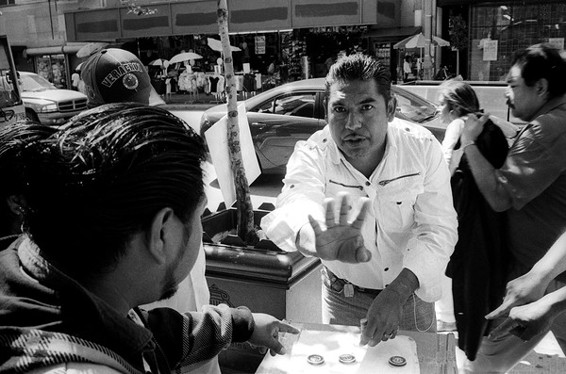 It is hard to pinpoint a single photograph and describe the story behind it. I would have to go with one of my most popular recent photos. I was walking around downtown Los Angeles, waiting for the golden hour. The light was harsh and I was about to cave in and go home. But as I turned onto Broadway, I saw a Hispanic man running one of those table games with three bottle caps and one ball. He’d shuffle the caps and the person would have to guess which the tiny ball was under—in most cases, it was none of them! It is an old con game. As I approached the small mob of people on the sidewalk, he saw my camera and shouted insults and crude jokes at me, unaware that I spoke his language. I replied promptly, and as I did, he told me that photographing his game was illegal. I asked him to define illegal activity. In the end, we both laughed it off and carried on. Most of my stories are about conflicts, and all of my photographs are meaningful to me—even the ones that don’t get to see daylight.