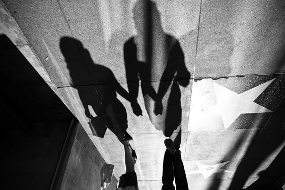 To find your background, look for interesting shapes, shadows, and lines. Look for arrows, curves, arches, diagonals, shadows, and entrances. Let objects like these be part of your toolbox when setting your stage. Then take your time as you wait for the right actors to walk onto your stage. This approach may test your patience, but you can be rewarded with incredible images.
