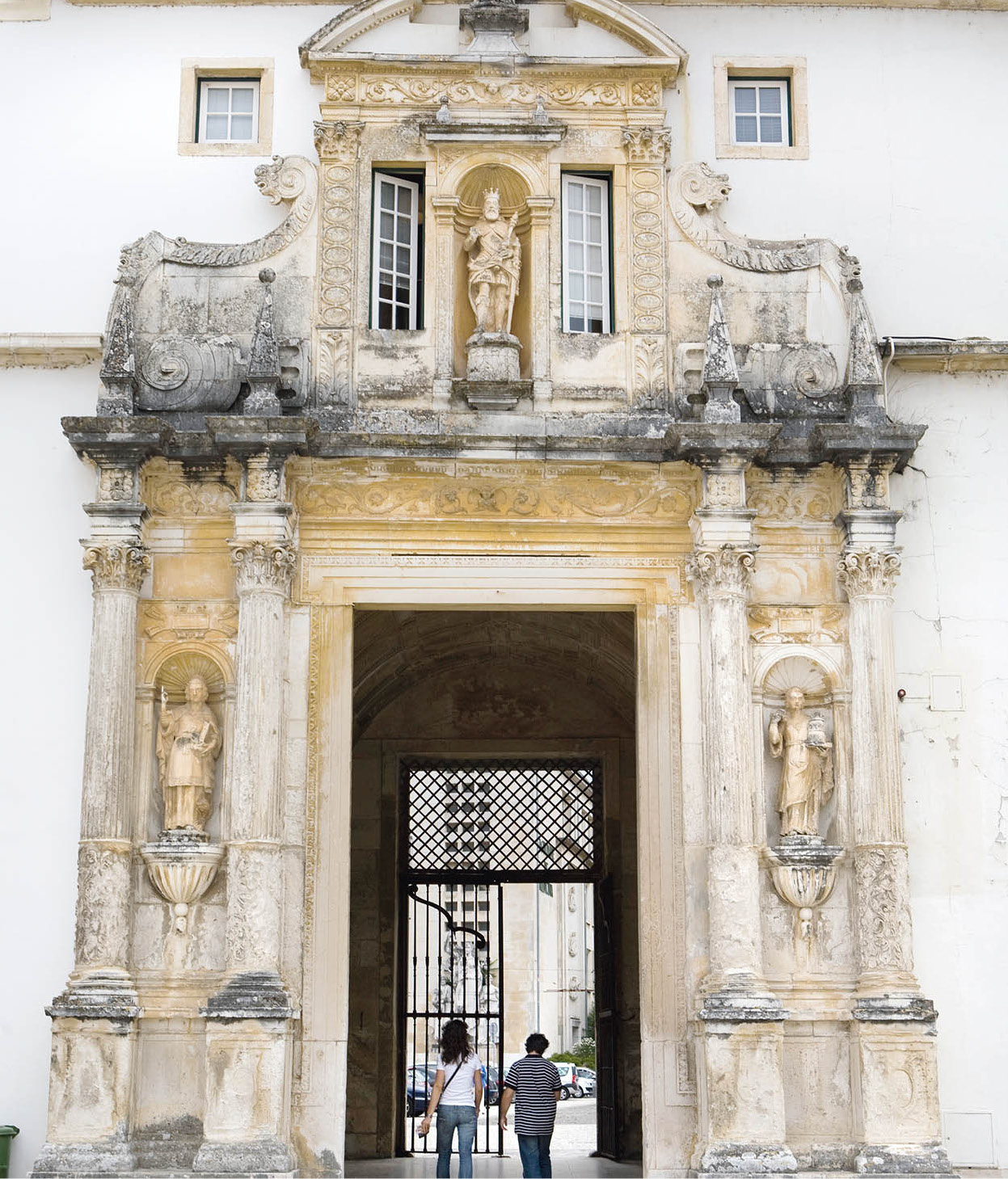 Of more historical interest than these stolidly functional buildings is the Pátio das Escolas (Patio of the Schools), within the Universidade Velha B [map], the Old University. To enter the patio, pass through the 17th-century Porta Férrea, a large portal decorated in the Mannerist style, to a large, dusty courtyard that is used for parking. Here are some of the oldest and stateliest buildings of the university. The figure of João III, who installed the university in Coimbra, still reigns from the centre of the patio. Behind him, there is a magnificent view of the river.