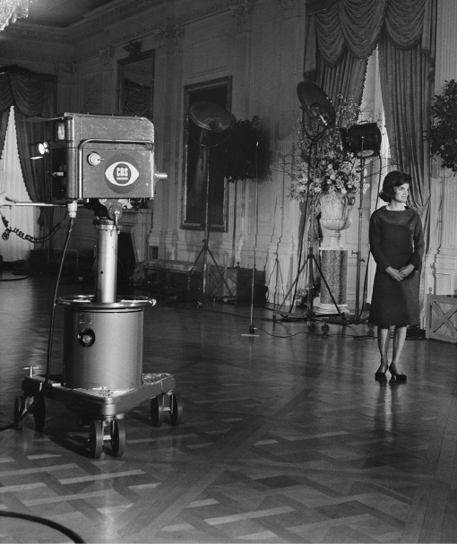 Jacqueline Kennedy tijdens de opnames voor haar televisierondleiding door het Witte Huis