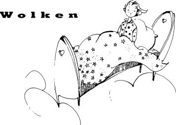 Maar dat lijkt maar zo. Hieke glijdt met haar bedje net van een wolk af. O...ze krijgt er de kriebels van in haar buik. De wolken zijn heel lief voor haar.