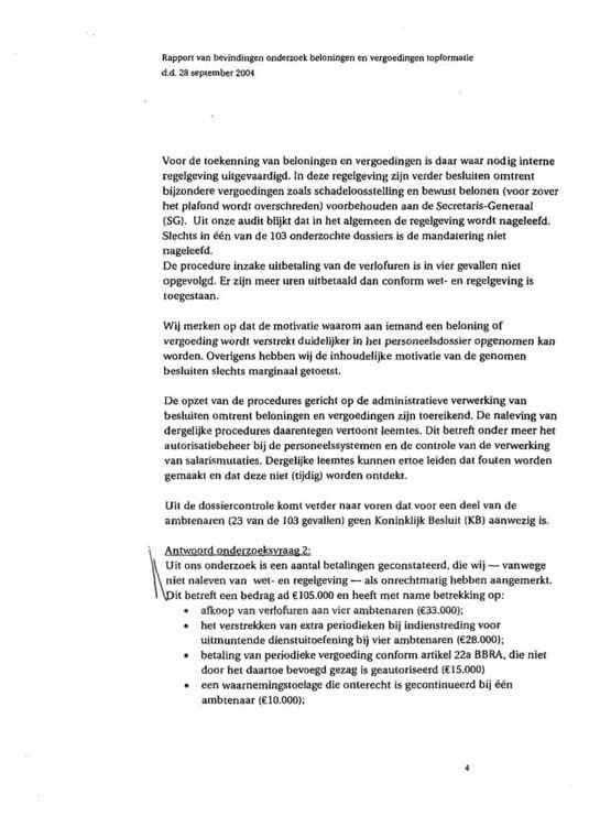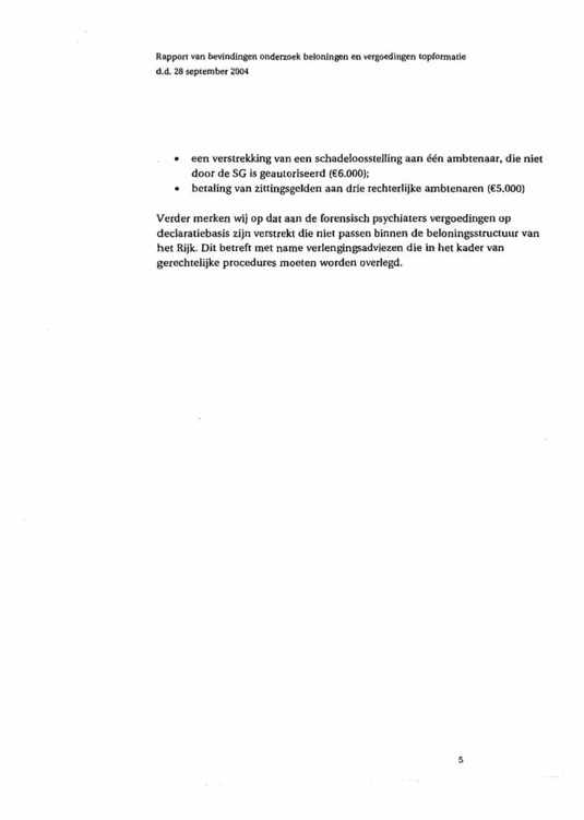45 28-09-04 | Ministerie van justitie | Rapport van bevindingen inzake het onderzoek beloningen en vergoedingen informatie