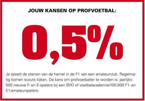 3800 Jeugdvoetballers worden opgeleid bij 36 BVO's, van PSV tot de kelder van de eerste divisie. Voorheen haalden profclubs 70 procent van hun spelers uit de D-pupillen van amateurclubs. Dat wordt steeds minder, de meeste scouten ze nu als F- of E-pupil. Opleidingen aan de buitengrenzen als FC Twente/Heracles en Limburgse en Brabantse clubs scouten ook in België en Duitsland. Van de 3800 jonge profspelers valt jaarlijks 25 procent af. Dertig spelers per jaar halen de eindstreep. Zij dwingen een profcontract af en scharen zich bij de duizend profvoetballers in Nederland. De beroepsopleiding tot profvoetballer is er alleen voor jongens. Het vrouwenvoetbal groeit snel, maar wordt nog niet gezien als topsport. Dames van de eredivisie krijgen een onkostenvergoeding.