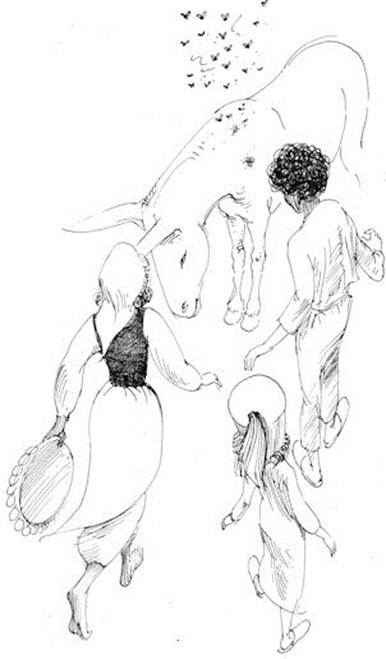 « Alors, laissant ou la fiole, ou l’onguent, ou l’aiguille que j’avais à la main, je caressais son museau et je lui parlais. Je l’encourageais. “Tu as un ami maintenant, petit âne, lui disais-je. Tu n’es plus seul et perdu dans cette grande ville. Tu vas guérir, tu vas guérir. Je te le promets, moi, Bachir, qui t’aide dans ton souffle. Tu connaîtras de nouveau le bon soleil, l’ombre douce, l’eau fraîche. Encore un peu de courage, mon petit. Tu vas guérir, tu vas guérir.”