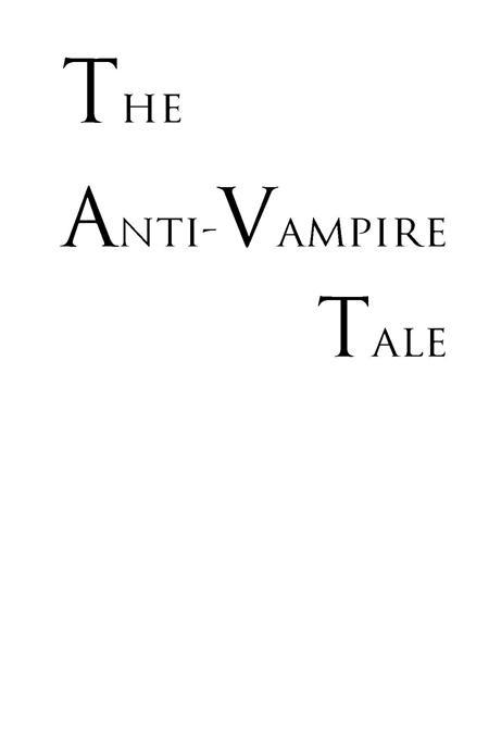 The Anti-Vampire Tale is a work of fiction; all of its characters are inventions of the author. Any resemblance to the living or the dead is entirely coincidental.