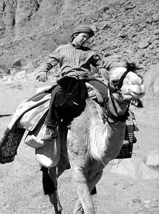 Wüste Sinai: Bei den Beduinen lernt mein Sohn Aaron das Reiten auf einem Dromedar.