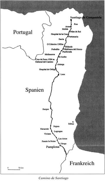 Das Thema »Ausrüstung«, sicher mit das Wichtigste, soll wohl bedacht sein. Überall kann ich mir die Information anlesen, dass es höchstens zehn Kilo sein dürfen, die man so täglich mit sich herumschleppen kann. Bei mir ist dieses ein besonderes Problem, da ich im Alter von 55 Jahren bereits etliche Rückenprobleme hinter mich bringen musste. Also gilt es, langfristig die notwendigen Utensilien zu beschaffen, angefangen vom Trekkingrucksack, der nicht zu groß sein darf, damit man nicht verführt wird, doch wieder zu viel einzupacken. Dann die Schuhe: feste, aber nicht zu schwere Wanderschuhe, die vorher gut und langfristig eingelaufen werden müssen. Ich wandere mit ihnen schon gut vier Monate vorher kräftig herum. Auch sollen Trekkingsandalen mit, denn ab und zu brauchen die Füße auch in der Sonne Spaniens sicher mal Pause und etwas mehr Luft, und außerdem kann man mit diesen auch zur Not mal durch Wasser laufen oder sie als Badeschuhe unter der eventuell nicht so sauberen Dusche verwenden. Auch hier gilt, dass sie schon zu mir gehören müssen und dass meine Füße sie gut kennengelernt haben sollten. Blasen beim Wandern, das wäre sicher das Letzte, was zur Erheiterung auf dem Jakobsweg führen würde. Demnach steht für mich fest, dass ich die Schuhe sorgfältigst einlaufen muss, in der Hoffnung, dass sich dann auf der Tour keine unangenehmen Überraschungen einstellen werden.