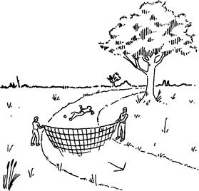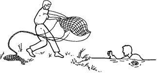 d. Technique du filet. C’est votre équipe de surface qui dirige la pêche, les plongeurs jouant le rôle d’éclaireurs.