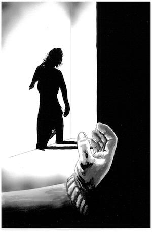 Und aus dem Schatten wankte eine Gestalt auf Greg zu: Halb zerfetzte Kleidung, der Unterkiefer hing schlaff herab, ein Arm fehlte, Blut rann an den Oberschenkeln entlang, langes wirres rotes Haar, ein zerstörtes, schlaff herabhängendes Gesicht.