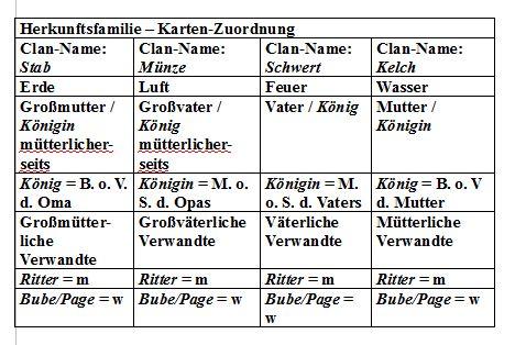 Familienmitglieder benutzt. Man mischt sie und legt sie als
