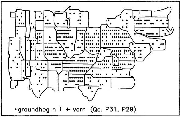 Illustratie 2.21 – Kaartje van de verbreiding van groundhog (bron: DARE 2: 819)