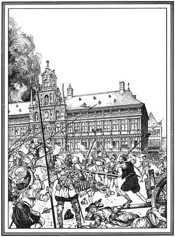 “Den oorlog? Zijt ge daar bevreesd voor? Wij zijn maar een handvol volks, een worm, vergeleken bij den koning van Spanje. Bovendien zijt gij vijftien provinciën tegen twee, wat hebt ge dus te vreezen?”