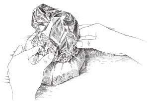 Figure 11. Crimp the edges of a 5-inch square of foil. Carefully place the foil over the pinched top of the phyllo to keep it from burning in the oven.