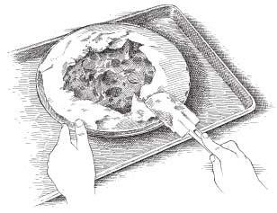 Figure 25. Use a rubber spatula to attach the potatoes to the rim of the pie plate. It's important to seal the edges this may to prevent the filling from bubbling out of the pie plate in the oven.