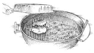 To trap heat and speed up the cooking process over the cool part of the fire, cover the chicken breasts with a disposable roasting pan. The pan creates an oven-like effect and protects the skin from further coloring. We also use this technique with pork tenderloin and chops.