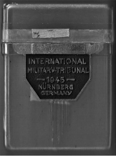 [56] Mededeling Peter Franz. Hoewel er op de koker de opdruk ‘International Military-Tribunal – 1945 – Nürnberg Germany’ staat, lijkt de kans bepaald niet groot dat het hier om Görings sigarettenkoker ging. De andere kant van het kleinood bevat namelijk het insigne van de Amerikaanse eerste infanteriedivisie. De tweede man van het Derde Rijk lijkt er niet echt het type naar te zijn geweest om met Amerikaans militair materiaal op zak te lopen. Via internet zijn er meer van dergelijke kokers op te sporen die vermoedelijk in gebruik waren bij Amerikaanse soldaten.