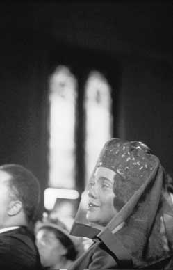 Coretta bei der Beerdigungsfeier ihres Mannes in der Ebenezer Baptist Church in Atlanta/Georgia am 9. April 1968. (AP Photo) |