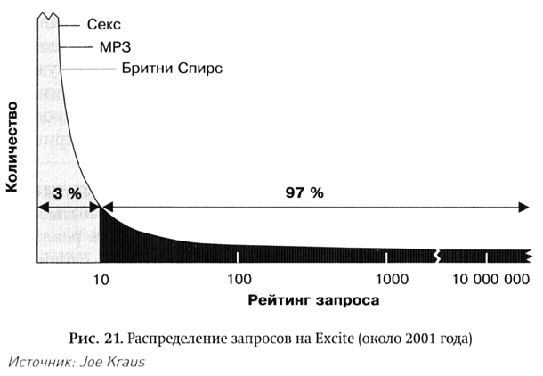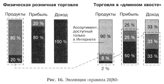 Одним из самых приятных аспектов реакции на статью было то, что она оказалась применима к огромному количеству отраслей. Статья была посвящена новой экономике развлечений и СМИ; я вскользь упомянул, что eBay (который продает товары) и Google (с малыми рекламодателями) тоже являются компаниями с «длинным хвостом». Однако читатели видели «длинный хвост» везде: от сферы политики до связей с общественностью, от нотных партитур до университетского спорта.