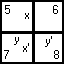 Эти девять слов — суждение, признак, термин, суждения, субъект, предикат, частное и общее суждение — окажутся необычайно полезными, если кому-нибудь из ваших приятелей придёт в голову поинтересоваться, не приходилось ли вам когда-нибудь изучать логику. Не забудьте употребить в своём ответе все девять слов, и ваш приятель удалится совершенно потрясённым, «став не только мудрее, но и печальнее». Взгляните теперь на меньшую диаграмму (с. 9). Предположим, что она нарисована на подносе, который вмещает все булочки в мире (разумеется, размеры его должны быть достаточно велики). Пусть все свежие булочки находятся на верхней половине диаграммы (помеченной буквой x), а все остальные (т. е. не свежие) — на нижней (помеченной буквой x'). На нижней половине окажутся чёрствые булочки, окаменевшие булочки, допотопные булочки (если таковые существуют — лично мне их видеть не приходилось) и т. д. Сделаем ещё одно предположение: будем считать, что все вкусные булочки находятся на левой половине диаграммы (помеченной буквой y), а все прочие (т. е. не вкусные) булочки — на правой половине (помеченной буквой y'). Таким образом, x временно означает «свежие», x' — «несвежие», y — «вкусные» и y' — «невкусные».