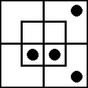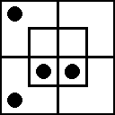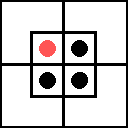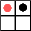 Примем теперь ещё одно соглашение: будем считать, что клетка «занята», т. е. в ней находятся некоторые булочки, если на ней стоит красная фишка. Слово «некоторые» в логике означает «одна или несколько», поэтому одной-единственной булочки в клетке совершенно достаточно для того, чтобы мы могли сказать: «В этой клетке находятся некоторые булочки». Условимся также считать, что чёрная фишка, стоящая в какой-нибудь клетке, означает, что эта клетка «пуста», т. е. в ней нет ни одной булочки.