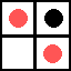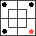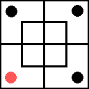 Чтобы играть в эту игру, необходимо иметь девять фишек: четыре фишки одного цвета и пять — другого. Например, четыре красных и пять черных.