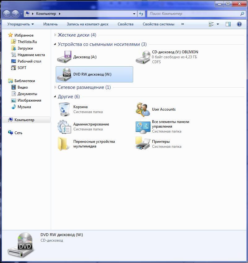 14) Вставляете имеющийся у Вас дистрибутив Windows 7 в дисковод, или монтируете образ в виртуальный диск.